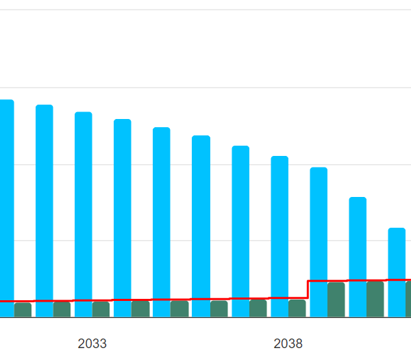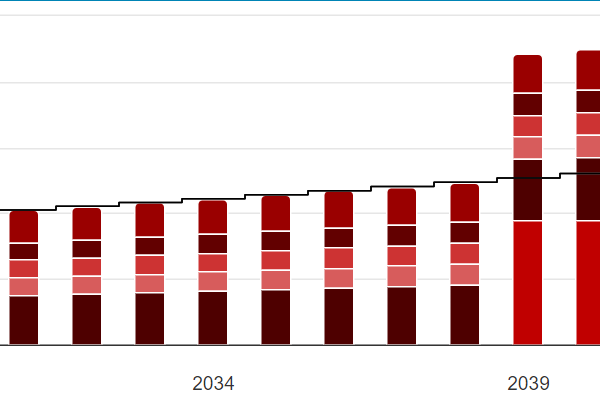 Now what do his expenses and his retirement cash flow charts look like? The first chart shows the bump in expense, and the second chart shows his retirement cashflow shortfall. He will now run out of money at age 85 instead of age 88 (three-year cashflow shortfall).